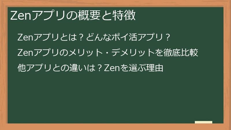 Zenアプリの概要や特徴、他のポイ活アプリとの違いについて説明し、Zenを選ぶメリットとデメリットを比較検討します。